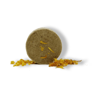 Està elaborat amb flors de caléndula i escorça de taronja acabades de moldre, argila de Ghassoul, farina d'avena, oli d'ametlles dolces i llet d'avena.